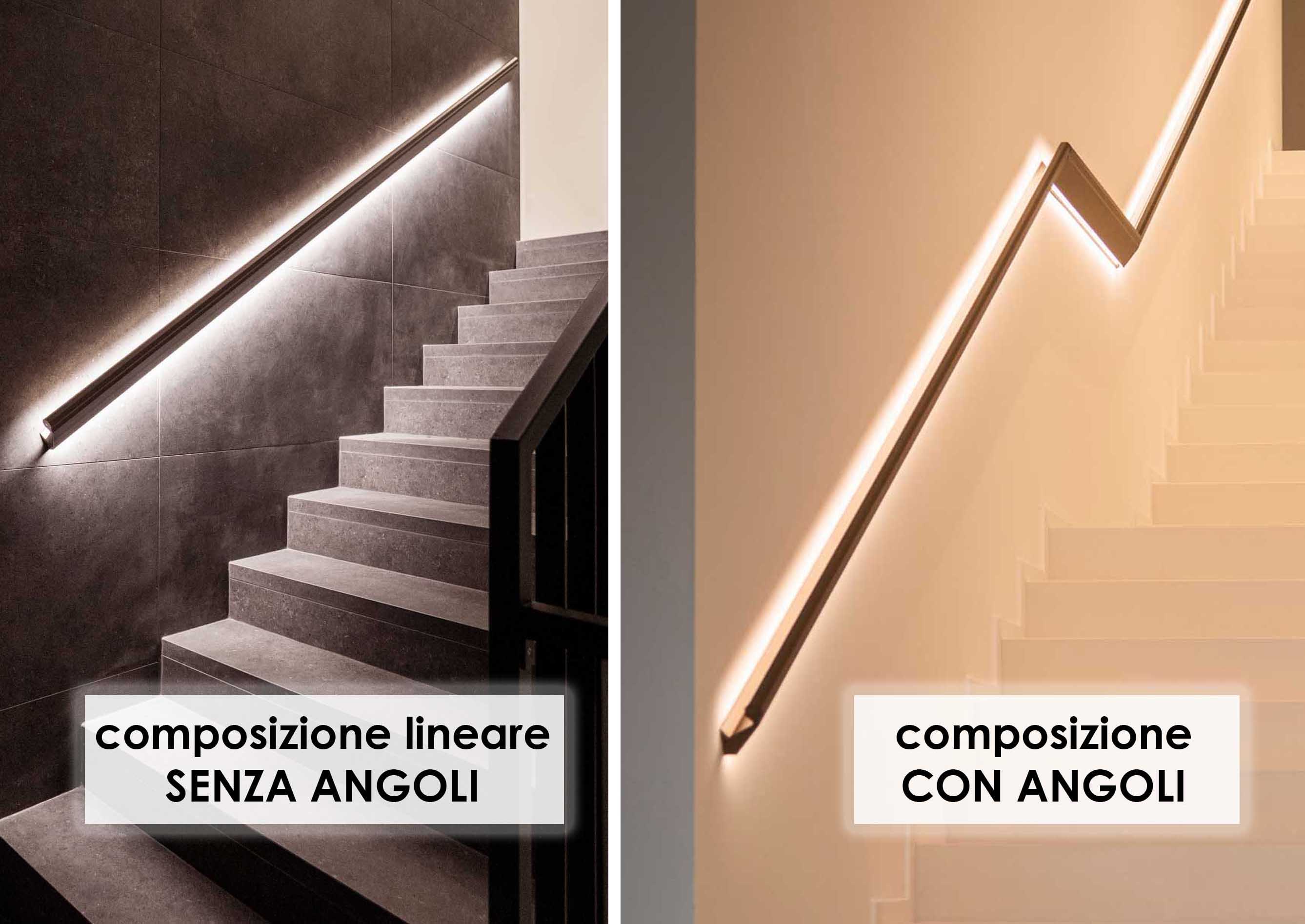 Originale e scenografico, è un vero e proprio “corrimano luminoso” in alluminio.